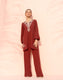 A taupe long kurta accented with fine ivory embroidery and a graceful silhouette. Crafted for effortless sophistication and everyday refinement.